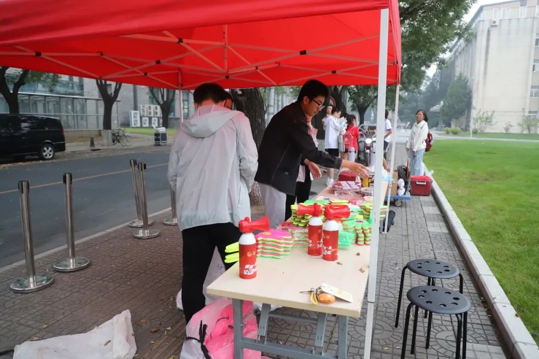 早上六时许,准备活动已经紧锣密鼓地展开。工作人员有序清理场地,进行音响等设施的调试工作以及物资的准备、分发工作。