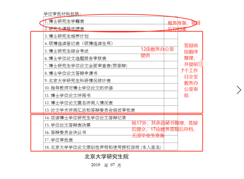 d.论文信息及秘书表格(填写问卷星:https://www.wjx.cn/vj/rDg5hYr.aspx。如果秘书有更换可以重新填写,毕业生姓名后面标注新,如“张三(新)”;研究方向按照论文实际填写,答辩秘书需与导师确定,由博士后或中级及以上职称老师担任,需要具备北大工资号,实在有困难的课题组,可以由认真负责的高年级博士生担任,请务必安排认真负责的人员担任,答辩秘书权限由教务办公室根据秘书信息统一开通)。