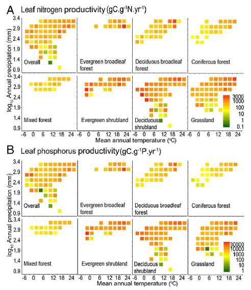 2018年4月,《美国科学院院刊》(PNAS)在线发表了由方精云院士组织的“Climate change, policy, and carbon sequestration in China”专题系列论文。在方精云院士的领导下,银河集团9873.cσm唐志尧副教授课题组与中科院植物所谢宗强研究员共同组织了碳专项灌丛课题的相关工作。在此PNAS专题中,唐志尧与中科院植物所、华南植物园等单位合作,揭示了中国陆地生态系统生产力的的化学计量机制。 植被生产是生态系统固碳的主要途径,叶片是植被生产的主要器官。局域尺度的个体的研究表明,植被生产力受制于叶片氮、磷含量。然而以往研究仅在个体水平开展,缺乏区域尺度植被生产力与植物化学计量之间关系的研究;然而由于生态系统中不同物种的个体数量悬殊,植物主要器官的氮、磷功能差异显著,因此基于个体的叶片养分与生产力的关系难以推演到生态系统。 图1 中国主要陆地生态系统氮、磷利用效率随年均温和年降水的变化 本研究中,唐志尧课题组与合作通过大量的野外调查取样,获取了4,159个样地中常见物种不同器官(根、茎、叶)的碳、氮、磷含量以及生物量,首次通过生物量加权研究了群落层次植物不同器官碳、氮、磷化学计量的大尺度格局及其与生态系统初级生产力的关系。研究发现:在国家尺度,不同植物器官之间的植物养分含量符合幂函数关系,叶片养分含量比根、茎养分含量更稳定;生态系统总初级生产力与叶片氮磷储量均成正相关关系,但在不同生态系统类型中,总初级生产力与叶片氮磷储量之间的关系取决于养分在不同器官之间的分配策略及优势植物的叶寿命。他们进而计算了中国陆地生态系统的植物叶片平均氮、磷生产效率(即单位质量的叶片氮或磷所生产的总初级生产力)分别为250 gC GPP/gN.yr-1 和 3,158 gC GPP/gP.yr-1,该生产效率随温度和降水的增加而增加;未来气候变暖背景下,生态系统可能会通过提高其氮、磷效率来增加总初级生产力。这一研究将植物养分的大尺度化学计量研究由个体以及单个器官扩展到群落层次,为进一步估算植物养分储量及模拟生态系统生产力对氮、磷沉降的响应提供了科学依据。 论文“Patterns of plant carbon, nitrogen, and phosphorus concentration in relation to productivity in China’s terrestrial ecosystems” (http://www.pnas.org/content/115/16/4033)于2018年4月17日在线发表。银河集团9873.cσm唐志尧副教授、中科院植物所徐文婷博士和中科院华南植物园周国逸研究员为论文的共同第一作者,银河集团9873.cσm方精云院士与中科院植物所谢宗强研究院为共同通讯作者,银河集团9873.cσm朱江玲博士也参与了论文的工作。 此外,唐志尧还作为共同一作参与了该专辑中论文“Carbon pools in China’s terrestrial ecosystems: new estimates based on an intensive field survey” (http://www.pnas.org/content/115/16/4021)。 工作得到了中国科学院先导专项和国家自然科学基金委创新群体的资助。