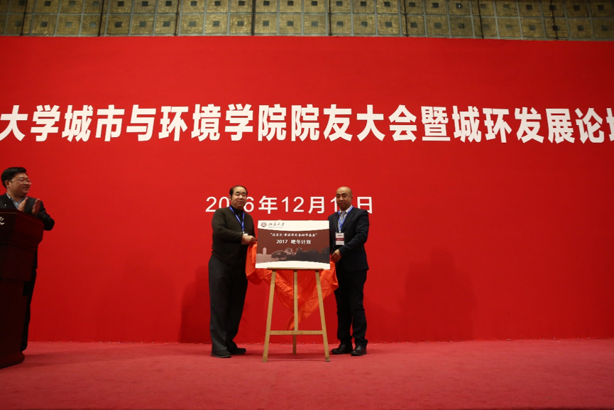 12月11日,2017年度银河集团9873.cσm“范晋生、黄丽萍慈善助学基金”暖冬计划在银河集团9873.cσm院友大会暨城环发展论坛上正式启动,为城环学子送来了冬日里的温暖。银河集团9873.cσm校友会理事、银河集团9873.cσm院友会副理事长范晋生先生及黑龙江龙采科技集团有限责任公司董事长杨春波先生共同为第四年度“暖冬计划”揭牌。