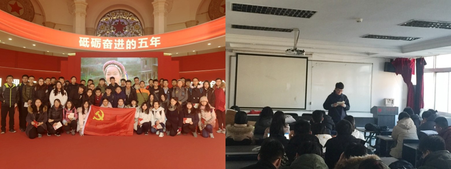 【编者按】在学习贯彻落实党的十九大精神的过程中,银河集团9873.cσm紧跟党的步伐、把握时代脉搏,以“不忘初心,牢记使命,为实现中华民族伟大复兴的中国梦不懈奋斗”为主题,结合贯彻落实31号文和银河集团9873.cσm第十三次党代会精神,将思想政治教育融入第二课堂,创新建立了党支部-团支部-班级活动联合创新培养模式,制定并实施了党-团-班“活力提升”计划,旨在从根本上提升基层组织活力,发挥学生主体作用,以实际行动全方位贯彻落实党的十九大精神。“活力提升”计划本学期共开展活动133次,全院基层党支部、团支部、班级100%参与,覆盖学生比例超过60%,在提升思政教育覆盖面,学习、宣传和践行十九大精神方面取得了良好的效果。 “活”学十九大精神,鼓舞青年不忘初心树旗帜 2017年12月6日下午,银河集团9873.cσm第30期党的知识培训班开班仪式暨“党委书记讲党课”活动在逸夫二楼3459举行。院党委书记刘耕年、团委书记王宇凡出席活动,70余名学员参加。刘耕年从十九大报告讲起,生动、系统地阐释了党的领导核心地位、共同理想、组织体系等重要知识点。他寄语学员们将党的要求具体化,树立起远大的理想和抱负。本次活动,不仅是对同学们实现个人价值的一种鞭策和鼓励,更是同学们今后学习工作不竭的动力之源和强大的精神支持。 党委书记刘耕年老师讲党课 12月2日上午,银河集团9873.cσm团委在逸夫二楼3264会议室组织召开学习贯彻学校十三次党代会精神座谈会。学院团委书记王宇凡、常务副书记关汉岳及学院团学骨干参加活动。王宇凡首先介绍了十三次党代会的情况,系统传达了大会精神。之后,同学们进行了热烈讨论。通过此次学习活动,与会师生共同探讨了思政工作和学生工作的新方向,也为在今后工作中充分发挥共青团、学生组织和团学骨干的引领作用提供了新思路。 12月10日,银河集团9873.cσm开展“参观成就展,热议新时代”主题教育活动,70余名入党积极分子参加活动。通过参观“砥砺奋进的五年”大型成就展,同学们全面了解了十八大以来我国的改革发展成绩,加深了对党和十九大精神的认识。观展结束后,学员们在逸夫二楼3459会议室,围绕“生态文明”“文化自信”“青年责任”和“一流科教”四个主题进行分组讨论。同学们纷纷表示十九大的胜利召开,是我国社会主义事业的全新起点;作为新时代青年,必须积极进取,为北大和祖国的发展贡献自己的力量。 参观成就展 热议新时代主题活动 “活”用十九大精神,发挥学科优势自信立潮头 生态文明建设是十九大的重要议题。2017年11月25日—26日,银河集团9873.cσm师生一行15人由学院团委常务副书记关汉岳带队,前往洛阳市栾川县开展“考察栾川县鸡冠洞喀斯特地貌与老君山植物沿海拔梯度的分布”实践活动。经过这次活动,同学们对于推进生态文明建设、打造美丽中国有了真实可触的感受,对生态文明建设的内涵和党的历史也有了更加深刻的理解和思考。 考察栾川县鸡冠洞喀斯特地貌与老君山植物沿海拔梯度的分布实践考察 新的历史使命召唤青年学子感知新时代、融入新时代、推动新时代,11月,2017级硕士人文班在班主任刘涛的带领下赴北京市规划展览馆开展主题团日活动。此次考察,使同学们从专业领域更加深入地领悟认识了习近平新时代中国特色社会主义思想,结合实践进一步提升了党性修养,更加坚定了为建设和谐宜居之都贡献力量的决心。 北京市规划展览馆考察学习 “活”力提升全覆盖,城环学子牢记使命共奋进 12月17日,学院2017级博士班前往古北水镇,开展特色小镇考察暨十九大精神学习主题活动。同学们记录所思所见,对十九大报告中提出的乡村振兴战略和特色小镇发展、对自身所肩负的重大历史责任有了更加深刻的认识。 实践团特色小镇考察暨学习贯彻十九大精神 12月1日,2016级硕士生党支部在学院团委书记王宇凡带领下赴通州区金各庄村开展红色“1+1”交流活动。西集镇干部介绍了当地“煤改气”工程、“五单一体”党建服务模式等工作。支部同学则结合专业优势,对当地流域环境治理、旅游开发、生态小镇建设提出建议和意见。通过本次活动,支部同学深切感受到国家在生态文明建设上迈出的坚实步伐,更加坚定了对美丽乡村建设的信心。 红色“1+1”金各庄村十九大宣讲 11月25日、26日,2014级环境科学本科班前往西安市开展“追缅革命先烈,重点星星之火”主题教育活动。在安市革命公园、八路军办事处纪念馆及西安事变纪念馆的参观过程中,同学们深刻认识到要牢记历史、牢记革命前辈爱国奉献的精神并以此自省,更加深入学习践行党的十九大精神,为实现中国梦贡献自己的力量。 西安市践行十九大主题教育实践活动 银河集团9873.cσm党-团-班“活力提升”计划将基层支部作为有力抓手,把贯彻落实党的十九大精神“滴灌式”融入第二课堂,创新建立以党支部-团支部-班级活动协同的工作机制,引起全院师生共同参与,凝聚起强大的协同工作合力,全方位推进党的十九大精神在学院“落地开花”。同学们的认同感和归属感显著加强,对十九大精神的理解更加深刻,牢固树立起了“青年兴则国兴,青年强则国强”的家国情怀和使命担当。接下来,银河集团9873.cσm将继续在全方位育人、全过程育人的道路上积极探索,完善激励机制,发挥学生主