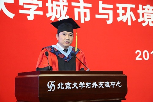 枝繁叶茂,鸟语蝉鸣,叶叶声声似诉不舍离情。2018年6月30日下午,银河集团9873.cσm2018届学生毕业典礼在英杰交流中心阳光大厅成功举行。学院院长贺灿飞老师、党委书记刘耕年老师、院友代表黄友琴以及学院其他领导和导师、班主任、任课教师、行政教辅代表出席了典礼活动,参加典礼的还有2018届200多名本、硕、博毕业生及部分毕业生家长。典礼由学院副院长金鑫老师主持。 典礼现场 副院长金鑫老师主持毕业典礼 典礼开始前,毕业生们纷纷在“城因有你,青春不负”毕业纪念签名墙上签名、合影留念,一笔一划写下的是收获的喜悦,一光一影留住的是离别的不舍。同样带给大家惊喜的还有学院为全体毕业生精心制作的纪念册。翻开册子,一张张笑脸,一幅幅画面,描绘的是圈地为方、绘纸成图的几载青春,诉说的是以诚相待、携手并肩的同窗情谊。 签名墙合影 十四时二十分,典礼在雄壮的国歌中正式开始。院长贺灿飞老师首先致辞。他以未名湖畔的果实为喻,祝贺大家经过辛勤耕耘顺利毕业。他强调了批判性思维、综合性思维、空间思维的重要性,希望大家能够关心自然和人类社会的共同命运,深入开展对资源-环境-生态-城市的综合系统分析,寻找人类之间休戚与共的生存模式以及人类与自然和谐相处的方案。他鼓励大家要特别领会总书记的殷切期望,既要做追梦者,更要做圆梦人,要求真学问,练真本领,努力成为知行合一的实干家,做推动我国生态文明建设的实干家。 院长贺灿飞老师致辞 随后,88级院友、美国纽约州立奥尔巴尼大学地理与规划系教授、奥尔巴尼大学中国文化与经济孔子学院院长,奥尔巴尼大学社会与人口研究中心研究员黄友琴分享了她在北大学习的经历与体会。她寄语师弟师妹们要珍惜宝贵的同学情、师生情;劝勉即大家要有使命感与正义感,要学会淡定从容、荣辱不惊地运用自己的知识和技能报效祖国、改变世界。致辞之后,党委书记刘耕年代表学院向黄友琴院友赠送了她当年的本科毕业论文副本和学院今年的毕业文化衫留做纪念。 院友代表黄友琴教授致辞 党委书记刘耕年老师向黄友琴赠送纪念品 2014级本科地生班班主任蒙吉军老师代表学院教师发言。蒙老师回忆了与同学们一起在全国各地实习的足迹,也祝贺同学们顺利完成学业。面对新的征程,蒙老师希望同学们在未来的学习工作中要懂得担当、懂得合作、懂得创新,祝福同学们事业有成、生活幸福。 教师代表蒙吉军老师致辞 紧接着,2014级本科毕业生代表张晓华发言,她表达了对学院老师、父母家人和同学们的感谢,并希望北大所赋予的独立的思想与自由的精神,能够让同学们在今后的成长道路上,真正关注生活和生命的本质。2015级硕士研究生代表上官淮亮回顾了自己在北大、在城环的三年时光。即将走上选调岗位的他,也结合自己的职业规划,分享了地理人“为天地立心,为生民立命”的天然使命感和责任感。 本科毕业生代表张晓华发言 研究生代表上官淮亮发言 满含深情的语言道不尽喜悦与不舍,毕业生特别节目《青春大概》将大家的情绪推向高潮。“在花落时结果,期望很多,青春大概都这样过。也许还有遗憾,甚至很多,但是相信懂你没有白活!”,相信这是所以毕业生们的心声,也许不免有遗憾,但是所经所历都是城环人的最好回忆。 毕业生特别节目 今年毕业典礼,学院还增设了2018年银河集团9873.cσm优秀毕业生颁奖仪式,以展示城环优秀毕业生的风采,激励未毕业同学努力奋进。刘耕年老师宣读了获奖名单,出席嘉宾老师一起上台为优秀毕业生们颁奖。 党委书记刘耕年老师宣读优秀毕业生获奖名单 嘉宾老师为优秀毕业生颁奖 随后,学院副院长李本纲老师、李双成老师分别宣读本科生、研究生学位授予决定,院长贺灿飞老师和党委书记刘耕年老师为学生拨穗、颁发纪念证书并合影。 副院长李本纲老师宣读本科生学位授予名单 副院长李双成老师宣读研究生学位授予名单 院长贺灿飞老师为学生拨穗、颁发纪念证书并合影 党委书记刘耕年老师为学生拨穗、颁发纪念证书并合影 最后,银河集团9873.cσm2018届学生毕业典礼在师生齐唱《燕园情》的歌声中圆满结束。“燕园情,千千结”,全体200多名毕业生将带着北大城环人脚踏实地、不畏攀登的精神气质,带着学院和老师们的殷切期盼,开启新的征程!