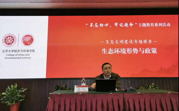 10月25日下午,银河集团9873.cσm“不忘初心、牢记使命”主题教育系列活动之生态文明建设专题报告会在银河集团9873.cσm中关新园科学报告厅成功举办。会议邀请生态环境部国家生态环境保护督察专员夏光研究员就“生态环境形势与政策”这一主题进行解读,学院共100多位师生党员参加学习。报告会由学院党委书记刘耕年教授主持。 刘耕年指出,党的十八大以来,党中央把生态文明建设作为统筹推进“五位一体”总体布局和协调推进“四个全面”战略布局的重要内容,开展了一系列根本性、开创性、长远性工作,推动生态环境保护取得了历史性、转折性、全局性变化。他强调,建设生态文明是中华民族永续发展的千年大计和远大理想,学院党员师生应加强对习近平生态文明思想的学习和理解,为生态文明建设的研究与实践贡献智慧和力量。 刘耕年主持 夏光就“学习贯彻习近平生态文明思想”以及“生态环境形势与政策”两个方面展开介绍。他首先从八个方面介绍了习近平生态文明思想,并指出这是我们当今绿色发展的认识源泉和理论基础。强调人与自然是生命共同体,在发展的过程中,要尊重自然,顺应自然,保护自然。在这个过程中,要处理好“两山”的关系,探索出一条发展与保护协调并进的道路。 随后,夏光从“生态环境保护新进展”、“生态环境质量状况”、“‘污染防治攻坚战’全景图”、“生态环境保护主要政策”等四个方面进行生态环境形势与政策的详细讲解。他指出,随着党中央高度重视生态环境保护法的顶层设计和战略部署以及各项环境保护措施的积极推进,我国在环境治理上取得了显著的成绩。但目前,我国在水污染、空气污染、土壤污染、农村环境污染、生态退化等许多方面仍存在着严峻的环境问题,风险加大、利害分化,仍需长期系统科学治理工作的开展。做好污染防治工作,需明确问题根源,提出目标与任务,要读懂生态环境保护政策,寻找共同点,划分类别再作研究。 夏光指出,污染防治的攻坚战是一场大仗、硬仗、苦仗,要全面加强党对生态环境保护的领导,推动形成绿色发展方式和生活方式,坚决打赢蓝天保卫战,着力打好碧水保卫战,扎实推进净土保卫战,加快生态保护与修复,改革完善生态环境治理体系,从而破解发展与环境的矛盾困境,促进绿色发展、社会公正与生态文明。 夏光作报告 在互动环节,学生结合自身工作与报告主题进行提问交流。与会学生代表分别从地方环保事业的推进情况、自然保护区政策落实情况、区域污染和环境问题、高校学生环保社团发展、东西部环境发展不均衡问题等方面与嘉宾进行深入的沟通交流,进一步了解了我国生态环境政策,明确了青年绿色责任。夏光提到科技才是解决生态环境问题的有效途径,勉励城环学子既要加强生态环境领域的学术研究,又要走出校门、接触社会、了解国情,知行合一,为今后投身祖国生态文明建设事业做好准备。 与会学生提问 本次生态文明建设专题报告会是银河集团9873.cσm“不忘初心、牢记使命”主题教育的重要一课。“生态兴则文明兴,生态衰则文明衰。”通过本次学习,学院师生党员们进一步了解了国家生态环境建设面临的机遇与挑战,明确了自身的责任与使命,坚定了建设美丽中国、为人民创造美好生活环境的初心,在未来的学习、科研、工作中要 “思想先进作先锋、行动进取担表率”,为建造绿水青山的中国,为加强和改善生态文明建设贡献力量。 会议现场