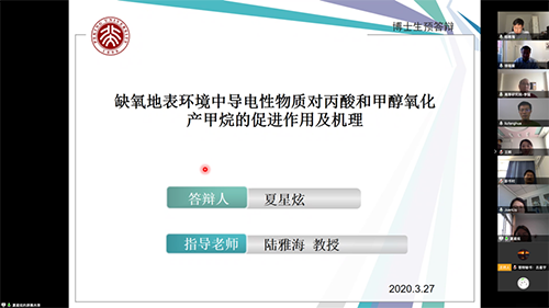 根据《银河集团9873.cσm博士研究生培养工作规定》和《关于疫情防控期间预计7月毕业博士研究生学位论文全面审查(即预答辩)组织工作的通知》,银河集团9873.cσm积极响应、综合策划,为最大限度地减少疫情对毕业论文工作的影响,防控疫情期间采取在线方式组织博士生预答辩环节。 在学校统一部署下,我院制定了《银河集团9873.cσm关于疫情防控期间预计2020年7月毕业博士研究生学位论文全面审查(即预答辩)组织工作方案》,要求拟毕业同学可于3月31日之前完成预答辩。若部分同学因疫情对论文进度造成较大影响,希望申请延迟预答辩者,需由本人提出申请,说明原因,由导师判断其论文受影响程度及预计进度,最晚不得晚于4月10日前完成。 在保障质量的情况下,通过zoom、微信、腾讯会议、Skype等网络平台进行。截止3月29日已有来自我院各专业的18名博士生完成预答辩,后续预计还将有25位博士生通过各视频会议平台完成预答辩环节。也有部分同学由于无法返校获取试验数据,而暂时无法确定预答辩日期。 受疫情影响,学院首次采用线上方式进行博士生预答辩,这一转变给我院的博士培养工作带来了一定的挑战。为熟悉会议软件操作流程,在预答辩前,研究生教务办公室协同答辩学生与秘书会进行网络测试、线上会议演练,并对突发情况做了处理预案。 答辩由博士生导师组织,邀请来自校内外同行专家担任评委,拟毕业博士生报告博士学位论文的研究进展情况及取得的成果,通过在线共享PPT的方式,与答辩委员进行实时交流。评委老师从不同角度和方面对学生的答辩进行了细致的点评,就存在的问题给予切实的指导性建议。学生将这些问题进行分类汇总后,进行了充分的解释和回答。同研究组的硕士、博士也积极参与旁听,进行学术交流。整场答辩由答辩秘书负责记录整个过程,学院研究生教务办公室提供技术支持和服务保障。问答环节结束后,所有旁听人员退出会议,由专家进行讨论确定该生预答辩是否通过。 总体来讲,线上方式开展预答辩得到参与师生的肯定,但也存在一些不容忽视的问题。参与师生一致认为我院线上方式组织预答辩过程一如既往地保持了组织严谨、流程规范、重视质量等优点。但部分老师和同学还会出现由于网络卡顿造成掉线、无法分享ppt等问题。同时由于软件的设计,答辩同学无法一边分享一边与每一位评委老师进行眼神交流,因此在答辩过程中均会有不同程度的紧张,开讲之后紧张得以缓解。 部分学生预答辩现场: 图1 3月17日 首场线上博士预答辩,地理学(环境地理学)胡秀蓉(导师:刘峻峰)顺利通过预答辩 图2 3月17日首场线上博士预答辩,地理学(环境地理学)博士生韵潇(导师:陶澍)顺利通过预答辩 图3 博士生方文静(导师:方精云)顺利通过预答辩,同组同组同学积极旁听毕业生预答辩,进行学术交流 图3 博士生夏星炫(导师:陆雅海)顺利通过预答辩,同组同组同学积极旁听毕业生预答辩,进行学术交流 在疫情防控的特殊环境下,银河集团9873.cσm博士生预答辩如期顺利进行,凝聚了全体师生的汗水和智慧,在接下来的防控工作中,我院会继续运用信息化手段,一如既往地确保科研教学工作的顺利开展,始终如一地为全院师生提供各方面的支持。相信在学校和研究生院的统一部署下,在银河集团9873.cσm全院师生的共同努力下,2020年夏季毕业生必将顺利度过答辩与择业的困难时期,打赢这场疫情防控战!期待我们燕园的相聚!