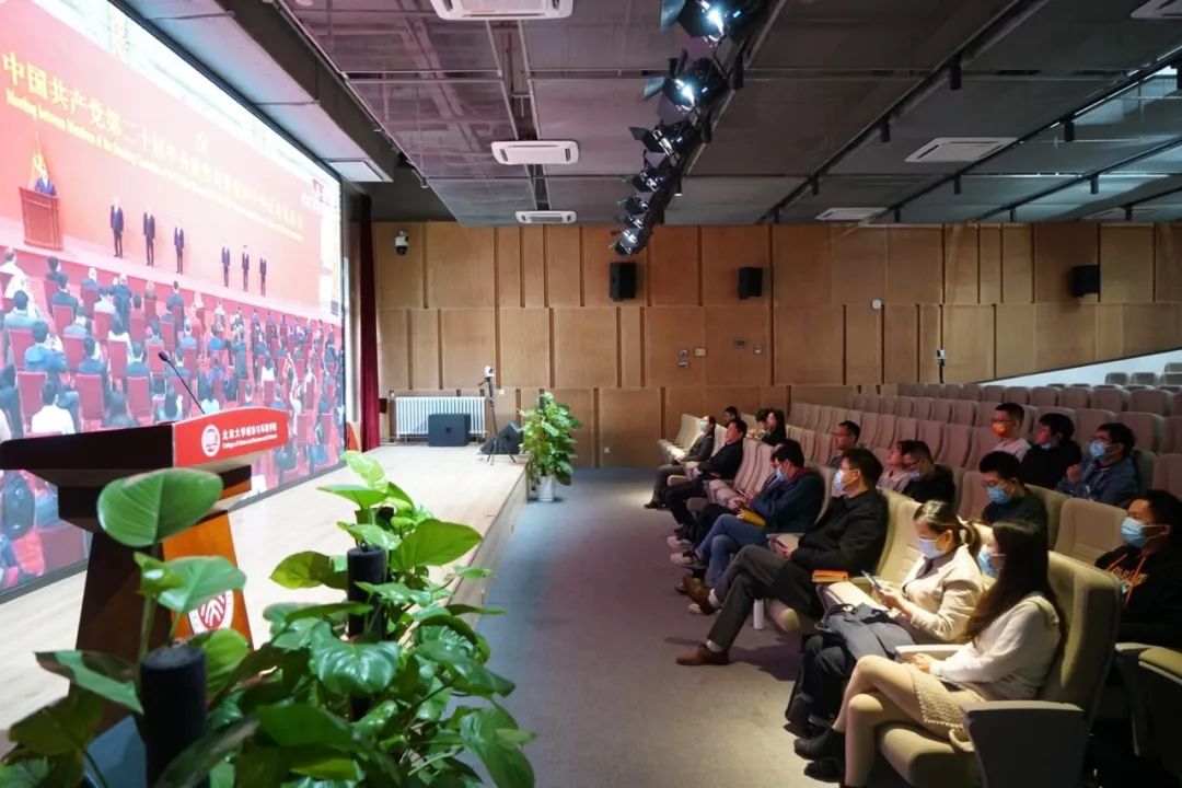 10月23日上午,中国共产党第二十届中央委员会召开第一次全体会议,选举产生了新一届中央领导机构。12时,在中国共产党第二十届中央委员会第一次全体会议上当选的中共中央总书记习近平和中共中央政治局常委李强、赵乐际、王沪宁、蔡奇、丁薛祥、李希在北京人民大会堂同中外记者亲切见面。习近平发表重要讲话。 在主会场银河集团9873.cσm303报告厅,银河集团9873.cσm党委书记彭建,院长贺灿飞,副院长曹广忠,党委副书记张新平,党委委员、环境学系系主任卢晓霞,党委委员、自然地理与自然资源系党支部书记蒙吉军,院长助理、党政综合办公室主任刘萍,团委书记、学工办主任谭卓立,团委常务副书记宋宛儒等老师,部分师生党员、民主党派代表集中学习观看了中国共产党二十届中央政治局常委同中外记者见面会。 资料来源:央视影音转播画面截图 中外记者见面会上,中共中央总书记习近平发表重要讲话。他向全体中外记者介绍了第二十届中央政治局七位常委,表示一定牢记党的性质和宗旨,牢记自己的使命和责任,恪尽职守、勤勉工作,决不辜负党和人民重托。习总书记指出:面对新征程上的新挑战新考验,我们必须高度警省,永远保持赶考的清醒和谨慎,驰而不息推进全面从严治党,使百年大党在自我革命中不断焕发蓬勃生机,始终成为中国人民最可靠、最坚强的主心骨。新征程是充满光荣和梦想的远征。蓝图已经绘就,号角已经吹响。我们要砥砺奋发、勇毅前行,努力创造更加灿烂的明天。 一、传承党的二十大精神, 为国育才,科教兴国 高擎红色旗帜,共颂时代华章。学院教师一致表示要继续紧密地团结在以习近平同志为核心的党中央周围,认真学习贯彻党的二十大精神,始终把教书育人放在第一位,为党育人、为国育才,立足本学科专业,科学支撑“绿水青山就是金山银山”、“人与自然和谐共生”理念的实践化,助推新时代的生态文明建设和民族复兴。 银河集团9873.cσm党委书记、自然地理与自然资源党支部 彭建:作为高校教师,我们要继续紧密地团结在以习近平同志为核心的党中央周围,听党指挥,立足教学科研本职岗位,认真学习贯彻党的二十大精神;始终把教书育人放在第一位,为党育人、为国育才,为全面建成社会主义现代化强国做好人才培育支撑;进一步坚持四个“面向”,守正创新,把论文写在祖国大地上,积极服务国家重大战略需求。 银河集团9873.cσm党委副书记 张新平:国际局势复杂多变,处在重要历史时间节点的2022年,党的二十大胜利召开,以习近平同志为核心的新一代党中央领导人顺利产生,振奋人心,伟大的中国共产党必将带领中国人民取得更加辉煌的成就。 银河集团9873.cσm副院长、生态学党支部 王志恒:党的二十大是承前启后的一次大会,选出了党的新领导集体。作为生态环境领域的科研工作者,我们将在习近平新时代中国特色社会主义思想的指引下,在以习近平同志为核心的党中央领导下,牢固树立并坚决贯彻“绿水青山就是金山银山”思想,时刻坚持“人与自然和谐共生”理念,以敢于斗争、敢于胜利的时代风貌,奋进新时代的生态文明建设新征程。 银河集团9873.cσm副院长 金鑫:我深切感受到党中央对于保障人民群众切身利益和实现人民群众发展愿望的高度重视。这些既是国家需求也是相关领域的学科责任。我们要将大会精神落实在日常学习工作当中,同时也要实践在支撑科研和人才培养的各项事业当中。以全面推动人与自然和谐共生为主线,立足学科前沿,依托本职工作,探索好模式、好方法,积极服务高质量发展和生态环境建设。 人文地理党支部 冯健:党的二十大是一次具有里程碑意义的大会,坚信会指引我国在社会主义建设新征程上取得新成就。同时我注意到,新一届中央政治局常委与中外记者的见面会,30年来首次在金色大厅举行,金色大厅悬挂的两幅巨大尺幅的画作《长江万里图》和《黄河,母亲河》,有力地向全世界宣告了中华文化源远流长,中华民族的伟大复兴势不可挡。作为一个地理和规划工作者,我们要身系家国,胸怀天下,用如椽巨笔在祖国的大地上画下最美的蓝图。 二、落实党的二十大精神, 学以致用,团结奋斗 回望来路,团结奋斗,创造辉煌历史;眺望前路,信心百倍,开辟美好未来。各党支部同学通过直播,积极学习习近平总书记讲话和全会精神,交流学习心得,提升思想理论素养。 2018级银河集团9873.cσm博士生党支部书记 徐浩然:习总书记在生态文明建设方面有过多次重要讲话,让作为地理学研究生的我收获很多。在接下来的征程中,我们要始终如一坚持中国共产党的领导,坚持社会主义不动摇,坚持为人民服务的初心,勇敢面对各种挑战和困难,砥砺前行。作为中国青年,我们要自信、自强,担负起自己的责任,继承中华民族的精神财富,吃苦耐劳,甘于奉献,守正创新。作为一名科研人员,我要将自己所学用于新时代的建设当中,为推动我国环境治理、实现绿色转型贡献自己的力量。 2019级银河集团9873.cσm博士生党支部党员 蒋晟:2022年10月23日,我在学院303观看了新一届中央政治局见面会的直播。习近平总书记发表重要讲话,介绍了当选的其他六位常委,总结了过去五年的工作,也提出了中共二十大的新目标。 当新一届领导班子迈着坚定的步伐走进会场的时候,周围响起了热烈的掌声。这不由让我想起国家这些年来取