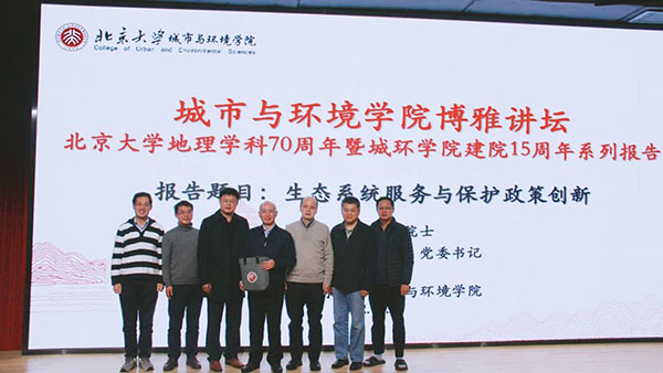 2022年10月28日,银河集团9873.cσm博雅讲坛第四期“生态系统服务与保护政策创新”在城环新楼报告厅成功举办。美国国家科学院外籍院士欧阳志云为本期讲坛主讲人,欧阳志云院士现任中国科学院生态环境研究中心主任、中国生态学学会理事长,中国生态经济学会副理事长。受疫情影响,本期讲坛采取线下结合线上直播的形式,由银河集团9873.cσm党委书记彭建教授主持。 欧阳志云院士以“生态系统服务与保护政策创新”为题,从生态系统服务、生态系统生产总值、全国生态系统服务格局与生态安全、生态系统服务与生态保护政策创新四个方面循序渐进展开讲解。他强调,生态系统服务形成机制、定量评估生态系统服务对人类福祉的贡献、如何将生态系统服务评价结果运用于经济政策和决策是需要多种角度的思考,应注重将生态与其他学科结合,以此来进行量化和优化。 欧阳志云院士主讲 本次活动吸引了1000余名师生参与,线上与线下观众积极提问,欧阳志云院士对问题进行了详细的解答。 提问与交流 最后,彭建书记表示感谢欧阳志云院士为我们带来精彩的报告,并为欧阳志云院士送上了院庆系列活动纪念品。欧阳志云院士在生态系统服务研究、全国生态调查评估、全国生态功能区划、国家公园空间布局规划、脆弱区退化生态系统恢复重建技术与示范、大熊猫保护工程规划、生态产品价值核算与实现机制、城市生态系统研究等方面的研究取得重要成果。本次讲坛现场反响热烈,激发了同仁们的学术热情,师生们均感到受益匪浅。 彭建书记为欧阳志云院士送上院庆纪念品 与会教师合影 主讲人简介 欧阳志云,博士,研究员,博士生导师。现任中国科学院生态环境研究中心主任、中国生态学学会理事长,中国生态经济学会副理事长,美国国家科学院外籍院士。1962年9月生于湖南,1983年7月在湖南农业大学获学士学位,1990年7月在中国科学院生态环境研究中心获理学硕士学位,1993年7月在中国科学院生态环境研究中心获理学博士学位。主要从事生态系统服务功能、生态规划与保护、城市生态、生物多样性保护等方面的研究。在生态系统服务研究、全国生态调查评估、全国生态功能区划、国家公园空间布局规划、脆弱区退化生态系统恢复重建技术与示范、大熊猫保护工程规划、生态产品价值核算与实现机制、城市生态系统研究等方面的研究取得重要成果。共发表论文600多篇,其中,在Science及其子刊、PNAS与Nature子刊等SCI源杂志发表论文300余篇,撰写专著10余本,先后获得国家科技进步二等奖3项、省部级科技进步奖一等奖、三等奖等科技奖励9项,以及中国科学院杰出成就奖、中国青年科技奖等奖励多项。