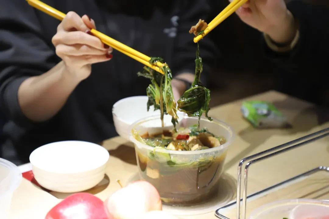 鲜嫩的白菜分作两批,一批交由热心的家园食堂掌勺大厨,稍加烹调,便成就了冬日限定美味——白菜粉条炖豆腐!浓油赤酱,是掌勺师傅娴熟厨艺的体现;清香鲜甜,是亲手所种的白菜自然芬芳的凝结。