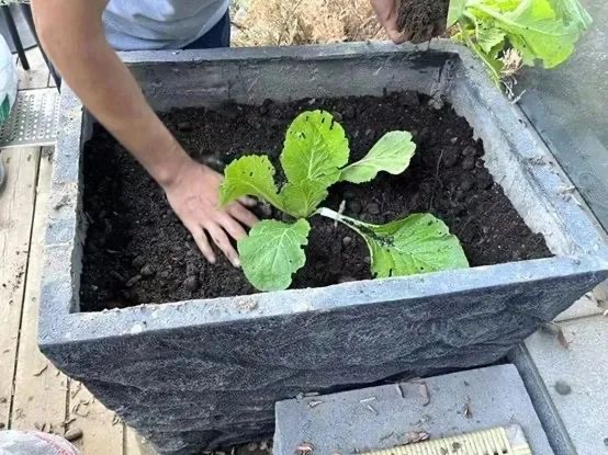 在家园食堂露台种植的白菜是由幼苗移植过来的,这一步需要十分严谨且专业的操作。生命科学学院的苏都莫日根老师在北大开设了一门“大学生种植实践”通选课,对种植教学拥有非常专业的经验,同学们便邀请他来进行指导和帮助。在移植两三天后,确认白菜幼苗已经成活,这片“试验田”便全权交由“林歌”计划的同学们负责管理。
