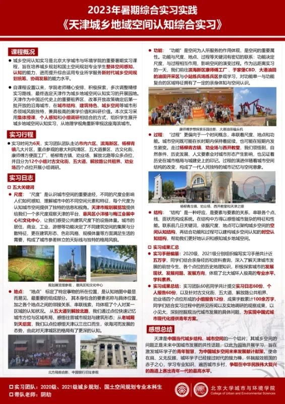 在2021年的暑期,他又参与了学院人文地理综合实习,开展专题研究。在此期间,他与小组成员一同了解安阳城市发展史,同时运用课堂上所学的知识,采用参与式观察和访谈的方式,深入参与到安阳市民的城市生活中,最终其撰写的实习报告得到了多位老师的肯定。