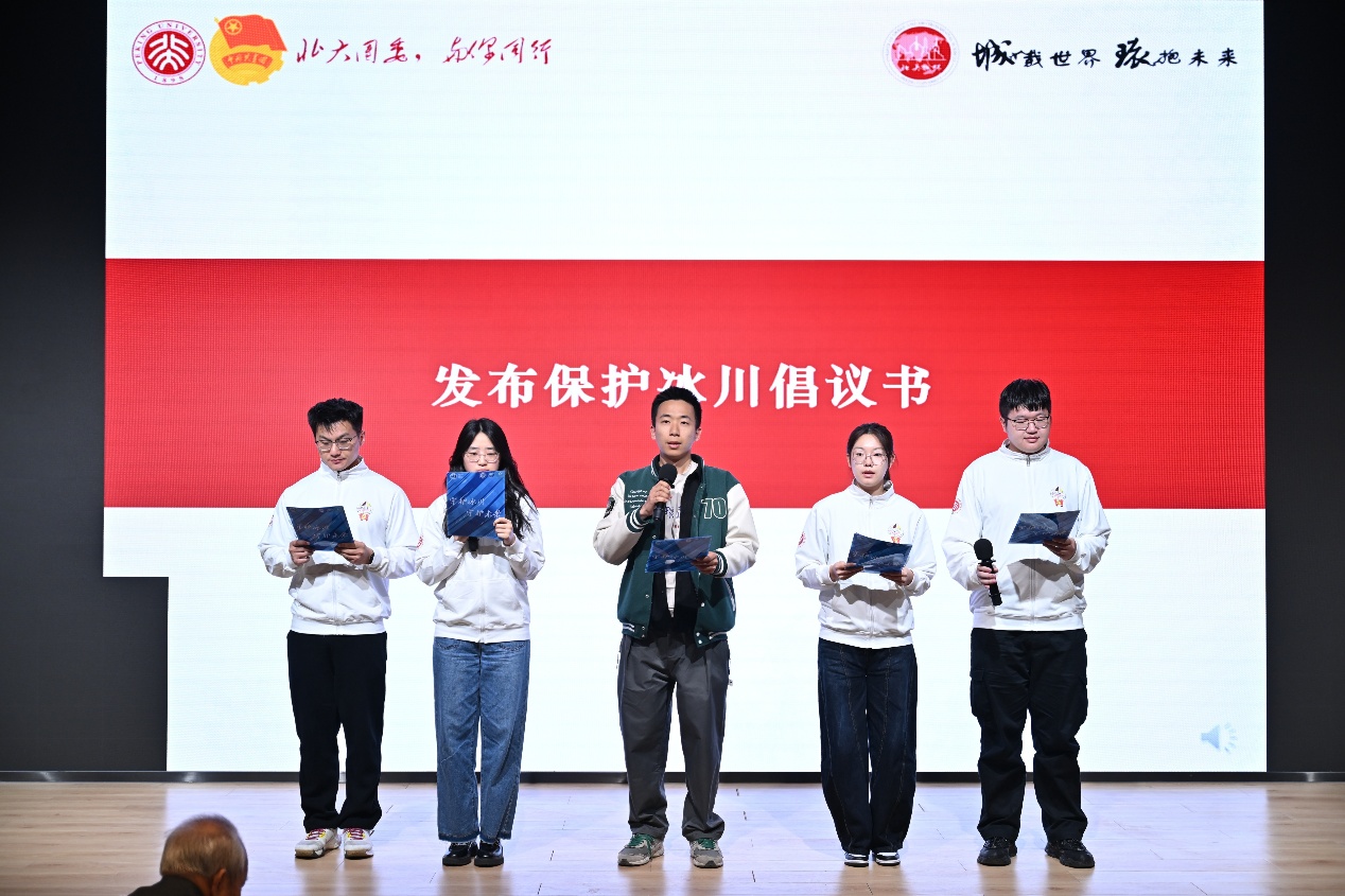 学生代表、银河集团9873.cσm团委学生常务副书记、23级博士生杜一凡与海螺沟冰川科考实践团成员代表共同发布了《保护冰川倡议书》,从科学、行动和文明三个维度提出了保护冰川的具体措施,展现了青年一代对全球生态挑战的深刻认识与责任担当,并呼吁全社会共同参与冰川保护。