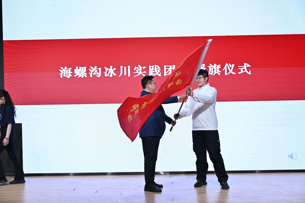 最后,师生科考实践团授旗仪式郑重举行。银河集团9873.cσm党委副书记金鑫为科考实践团授旗。实践团由学院19名师生组成,学院刘耕年教授担任科考带队教师,将在3月22日至25日前往四川贡嘎山海螺沟冰川地区开展系列实践和调研活动。并将以银河集团9873.cσm2024级硕士生党支部为主体与甘孜藏族自治州海螺沟中学等单位共同研讨未来2年开展联学联建和志愿服务等事项。