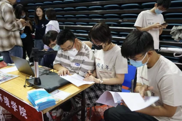 学院认真工作、尽职尽责的志愿者们